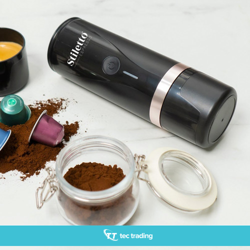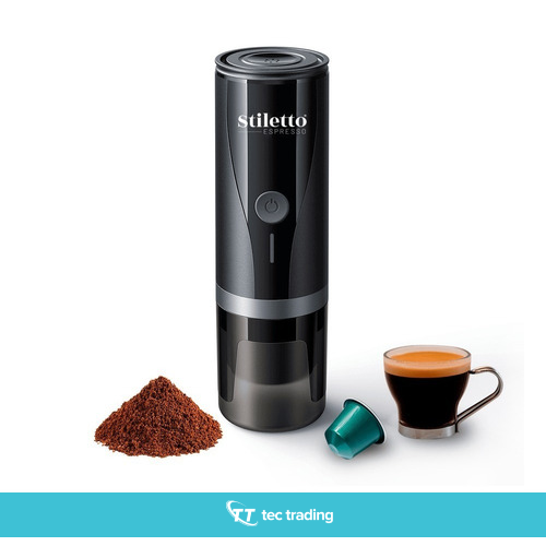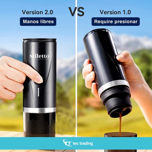Mini máquina de café espresso portátil con batería automática, 20 bares de presión, funciona con agua fría ya que calienta la misma en solo 4 minutos o con agua caliente lo que permite ahorrar batería, se carga mediante USB, funciona con cápsulas NS o compatibles y café molido. Ideal para llevar en el auto, bicicleta, moto, avión, campamento, viajes o utilizar en el hogar y la oficina.
